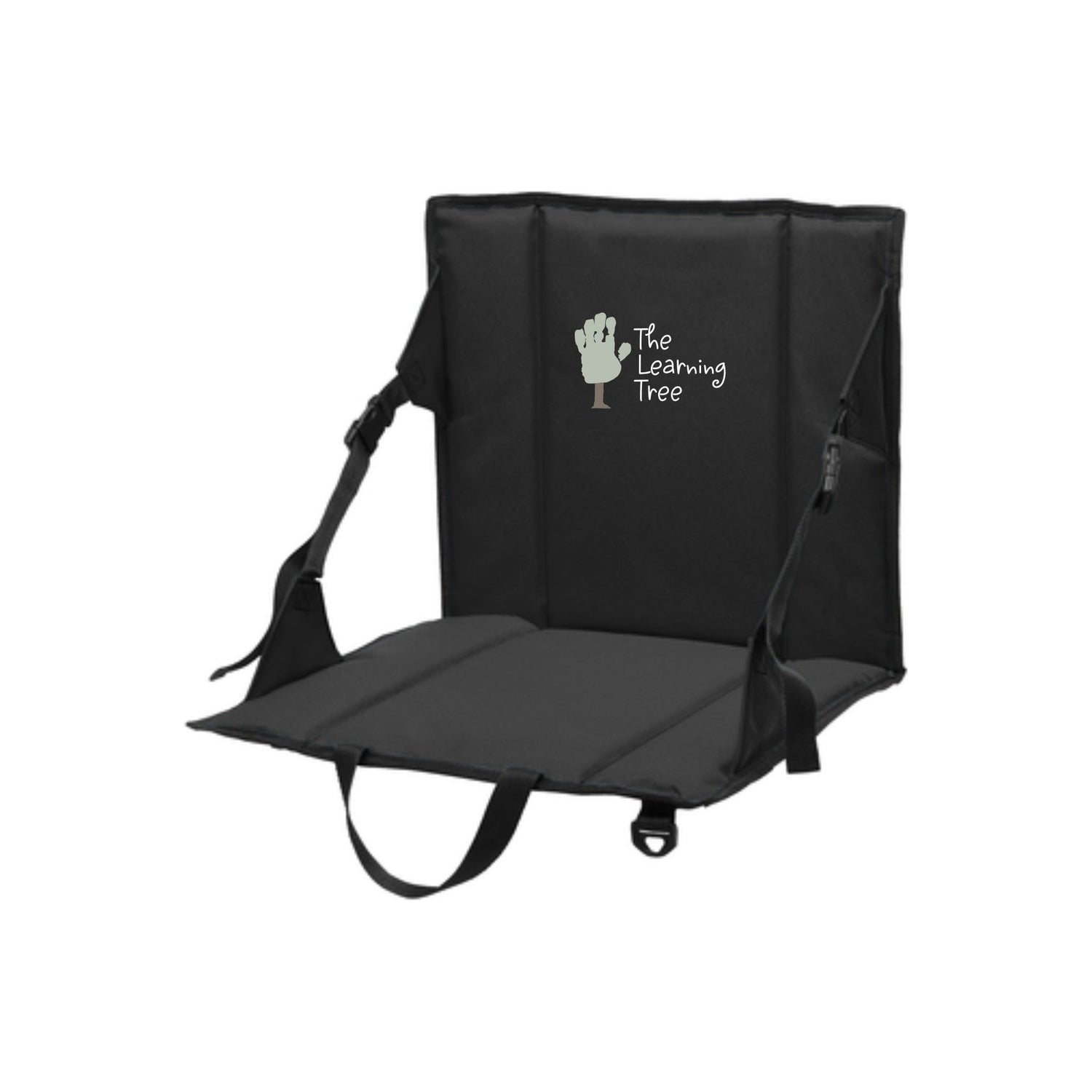 Cheer on the team and securely carry essentials. This portable padded seat adjusts for comfort and has a zippered pocket. The Learning Tree logo is embroidered on the inside.